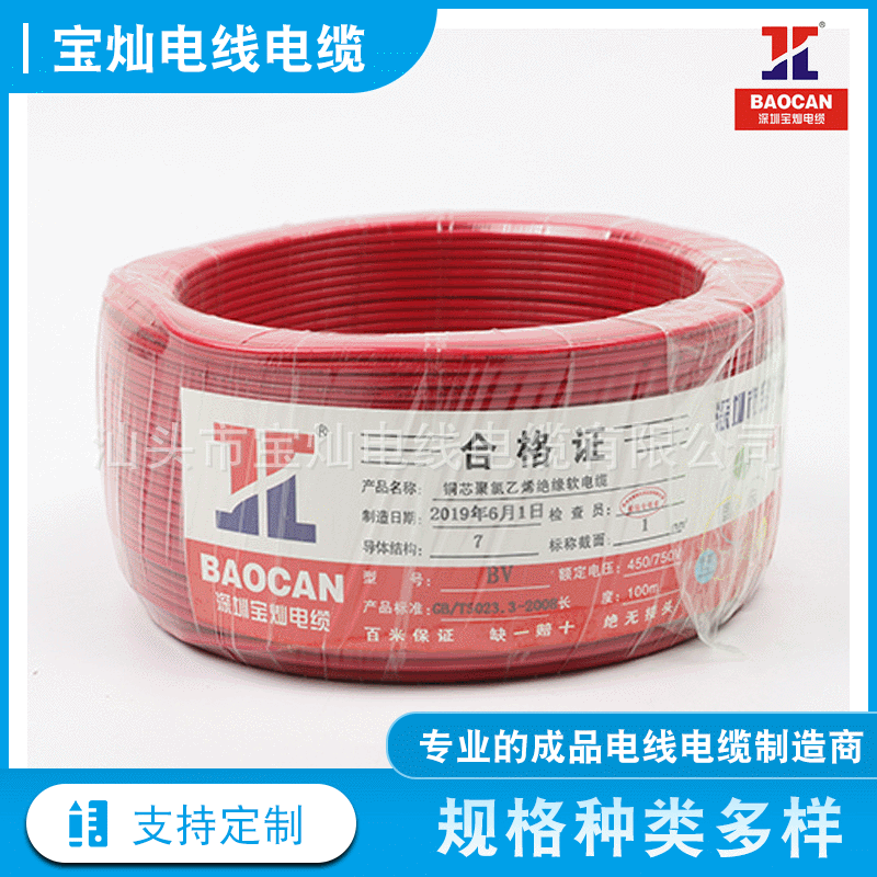 宝灿厂家电线电缆BV单芯硬导体无护套线 国标BV1.52.546电缆