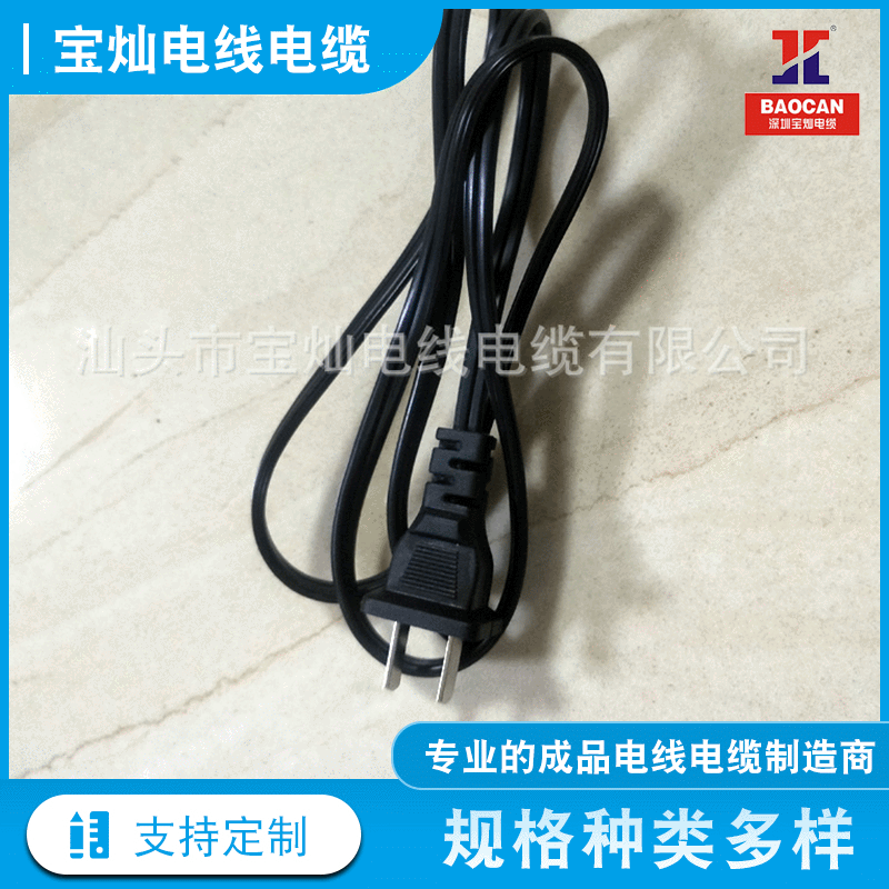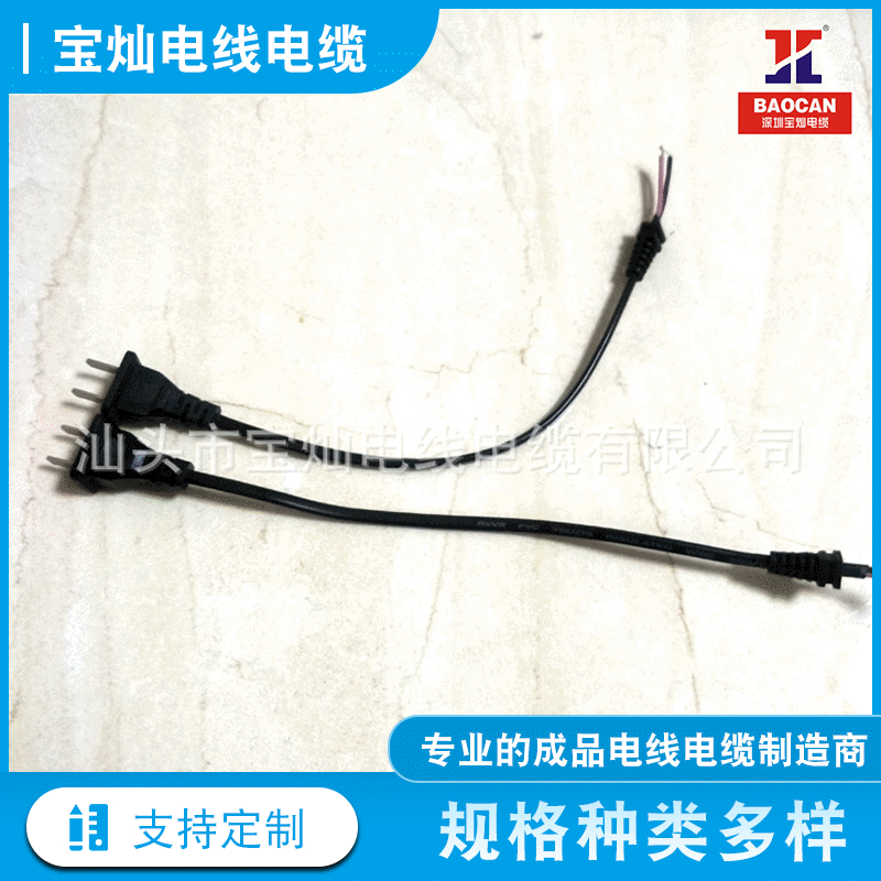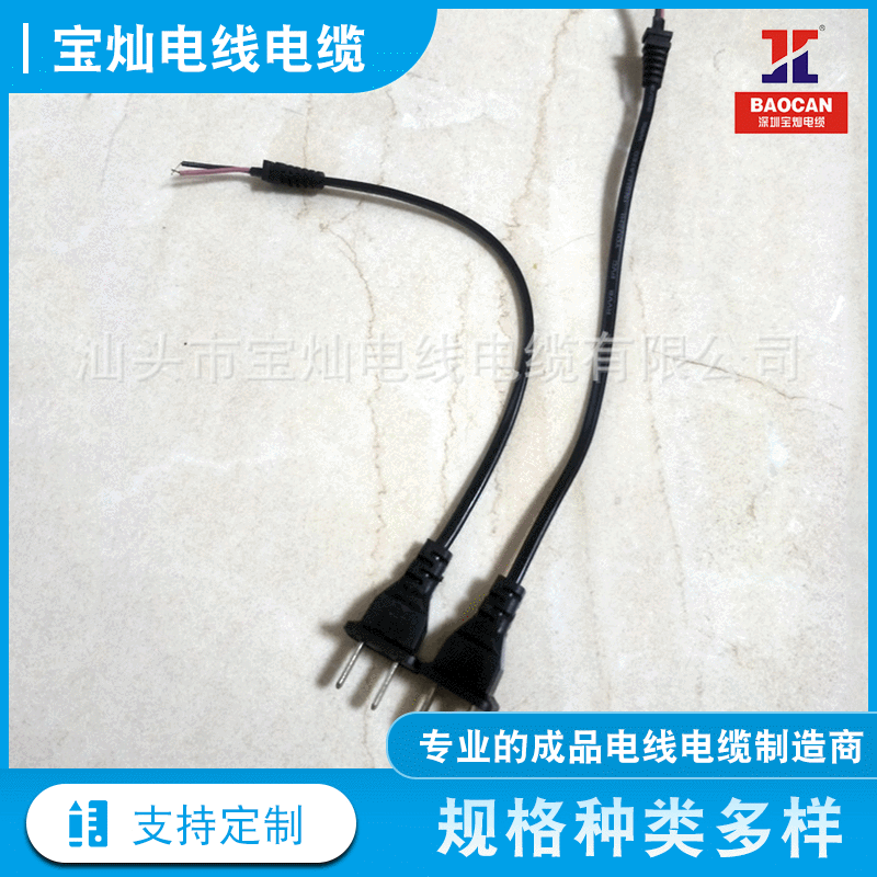 国规两扁插AC电源线2芯二插单头裸尾电源线国标插头线焊接电源线
