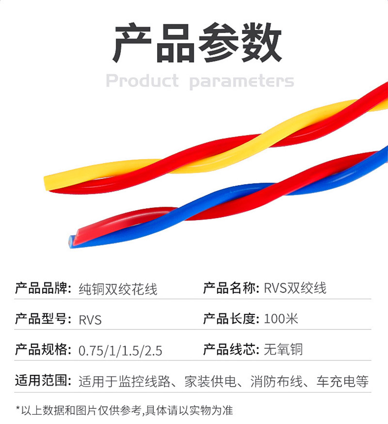 国标RVS花线0.75/1.5/2.5平方无氧铜2芯双绞线阻燃消防监控电源线